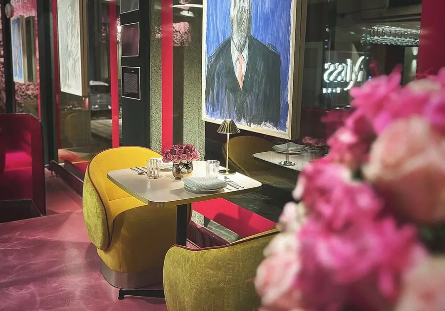 Dès l’entrée, Miss Rose éblouit par son univers rose bonbon, du sol au plafond, incluant un grand mur de fleurs roses, offrant ainsi un cadre instagrammable et transportant ses visiteurs dans le chic des années 80. Cet espace se veut également galerie, où les œuvres d’art contemporain sélectionnées par le chef, passionné d’art, changent chaque mois pour stimuler une nouvelle rencontre entre les clients et l’art moderne.